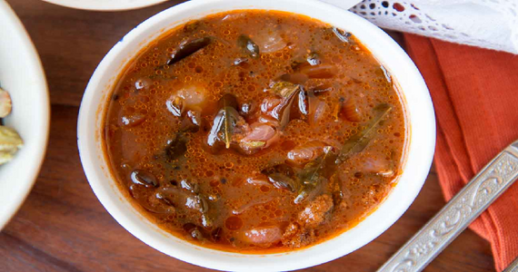 What It Is: A tangy tamarind-based curry prepared with vegetables like brinjal (eggplant), drumstick, or okra, cooked with spices and tempered with mustard seeds and curry leaves.