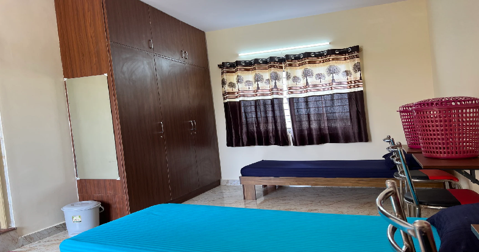 - PGs usually offer 2–3 South Indian meals daily (mostly vegetarian).