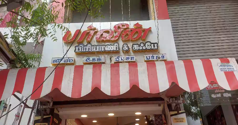 - Location & Hours: Bharathi Nagar, Collectorate area, Ramanathapuram. Opens around late morning (≈11:30 AM) for biryani service.